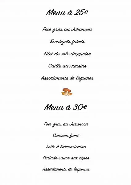 Nous proposons également des menus de fêtes à 25€ et 30€. N’oubliez pas de passer commander!